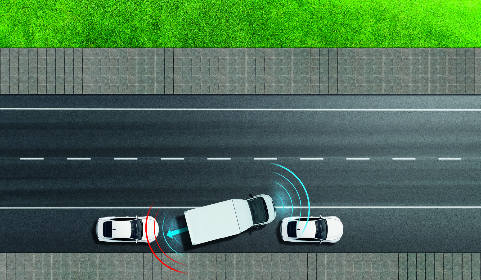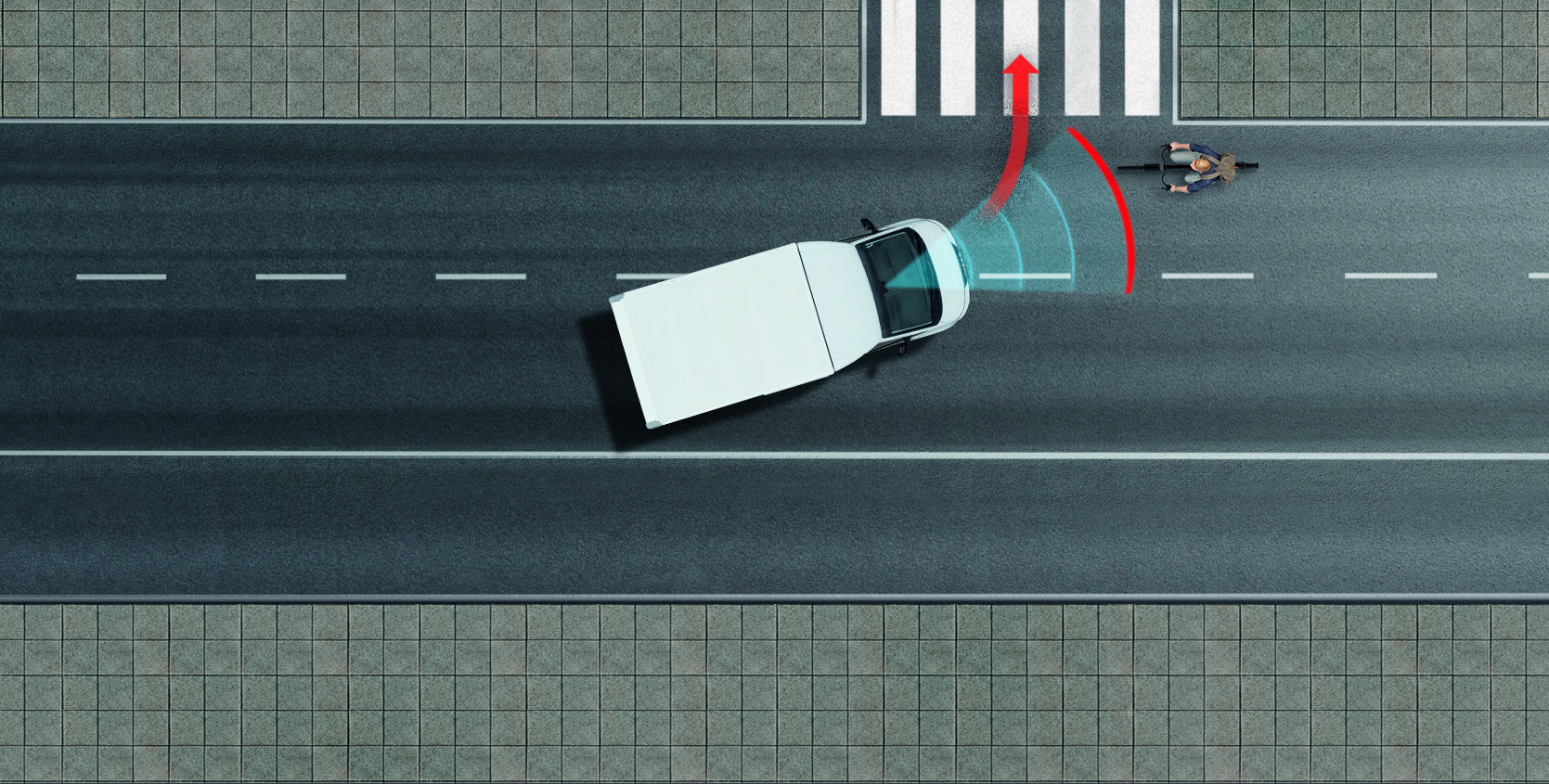Zbulon përdoruesit e rrugës në zonën e verbër të përparme duke dhënë paralajmërime vizuale dhe akustike.
