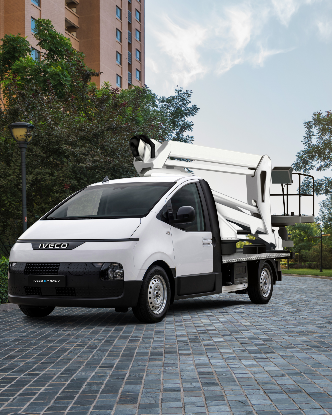 The IVECO eMoovy's Vehicle to Load feature provides an AC 230V supply to electric loads up to 3.5 kW.