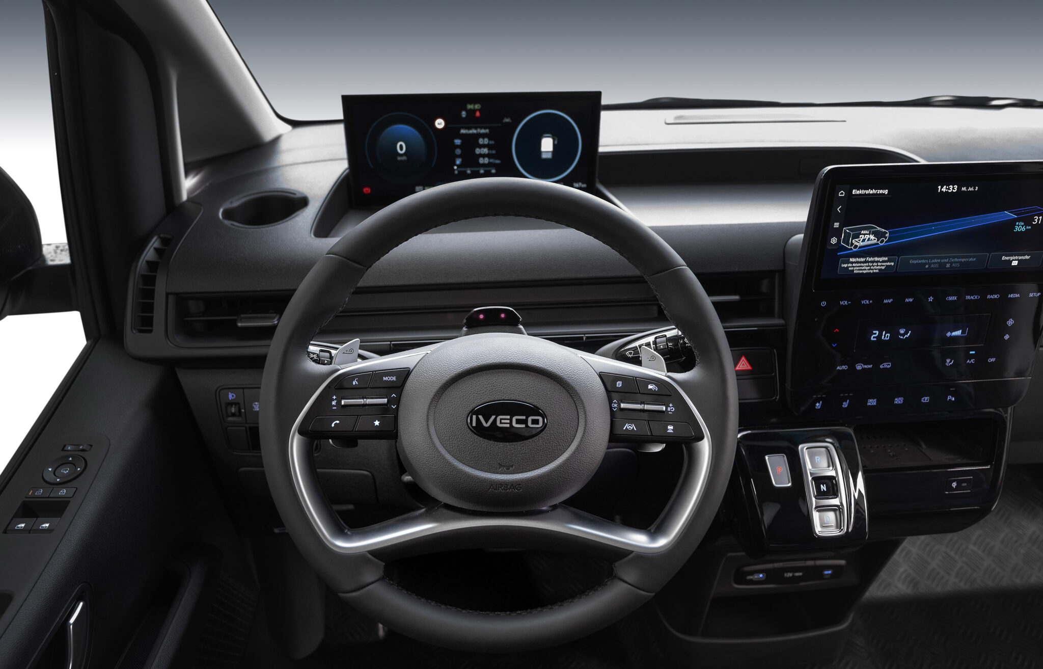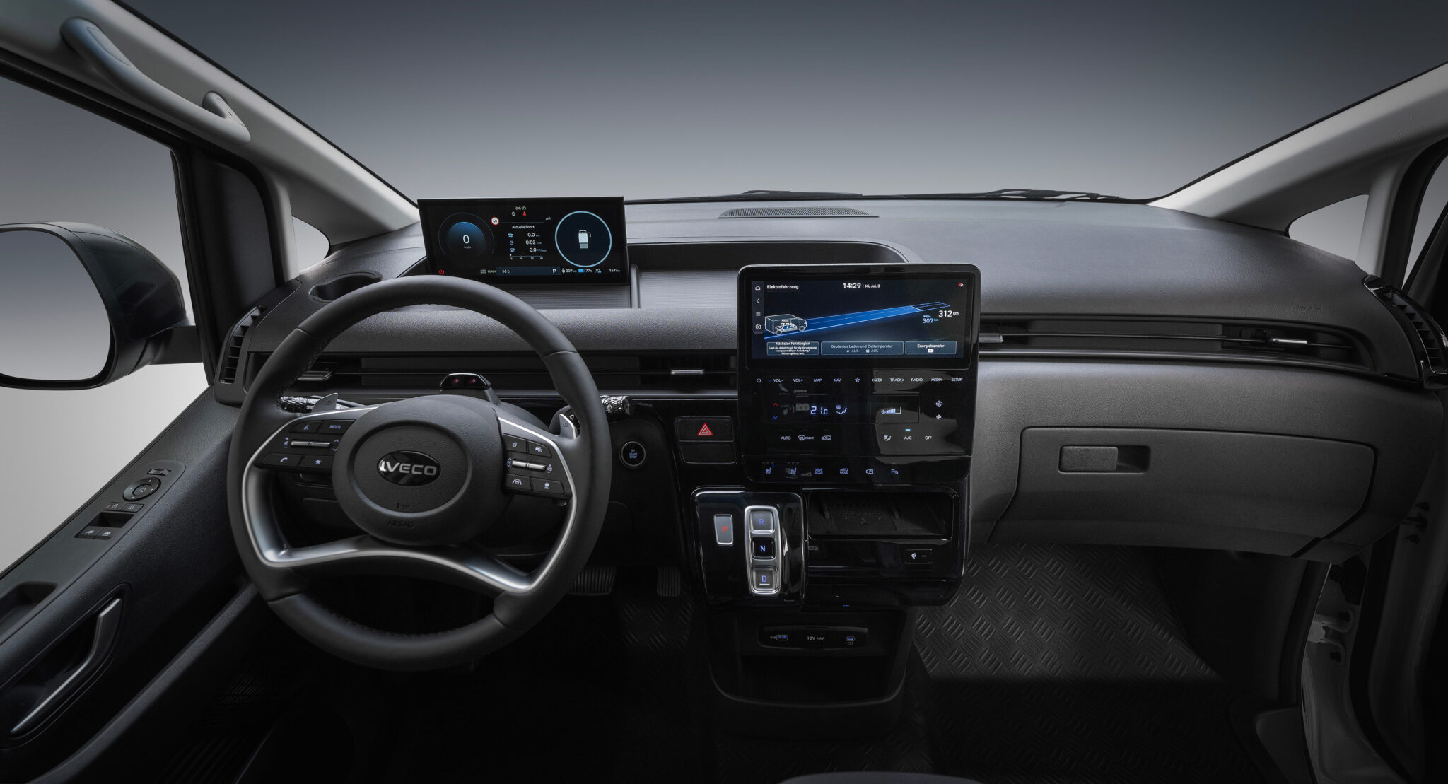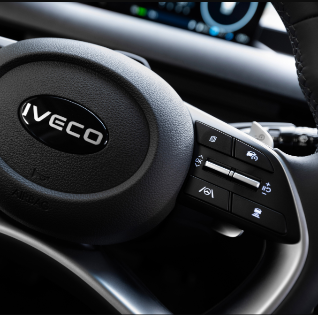 IVECO DRIVER PAL, asistenti dixhital vokal në bord i ndërtuar mbi Amazon Web Services me funksionet Amazon Alexa*, është plotësisht i integruar dhe kontrolli i klimës është i integruar.