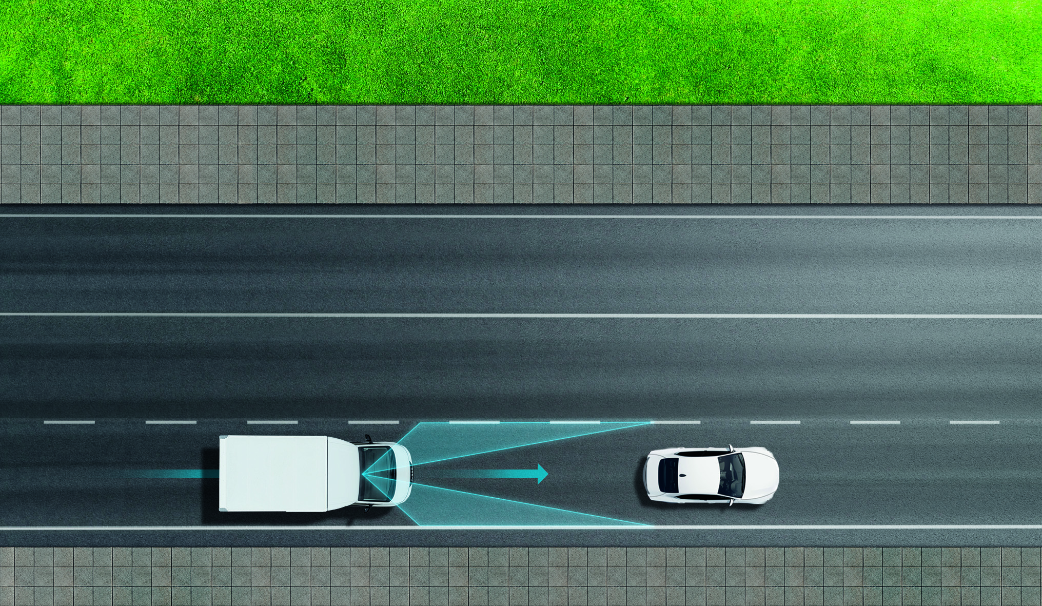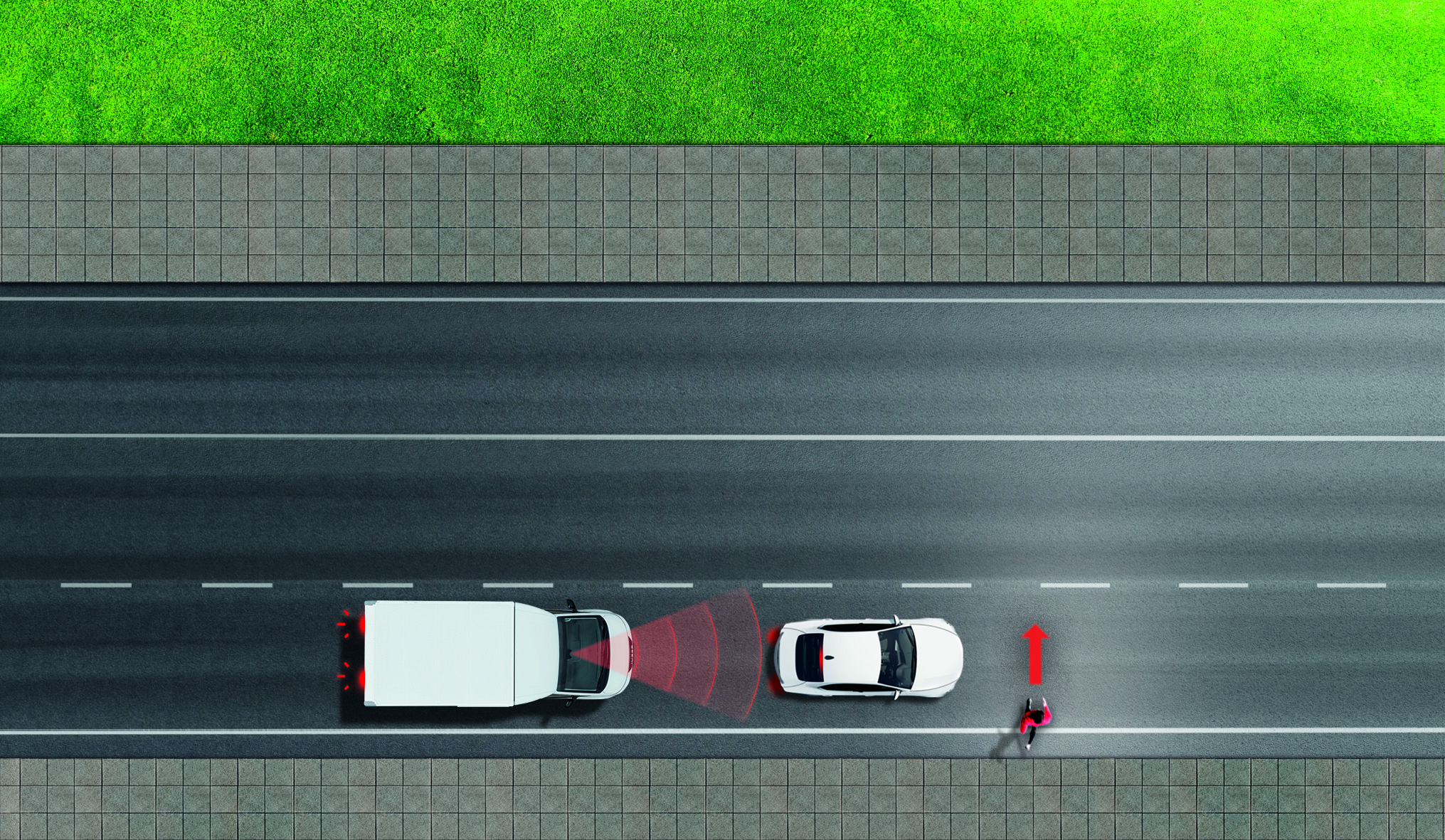 Njohin një përplasje të mundshme përpara, paralajmërojnë drejtuesin dhe ngadalësojnë automjetin sa më shumë që të jetë e mundur. Garanton frenim të plotë nga 80 në 0 km/h.