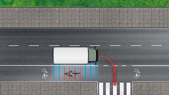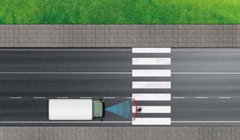 Sistemi zbulon dhe informon shoferin për praninë e këmbësorëve dhe çiklistëve në zonën e verbër përpara të afërt të automjetit dhe e paralajmëron për një përplasje të mundshme.