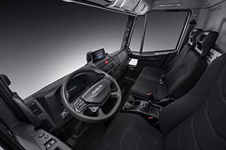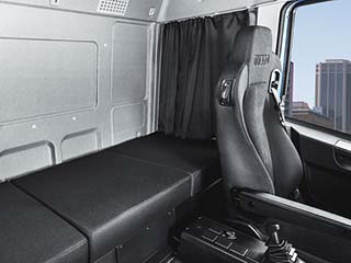 Komoditeti i shoferit garantohet nga sedilje me mbështetëse të plotë dhe pëlhurë të salduar elektro. Ka në dispozicion opsionale sedilje pneumatike "high-comfort", me rregullim të gjerë të mbështetëses së shpinës, rrip sigurimi me lartësi të ndryshueshme, sfungjer me densitet të dyfishtë dhe ngrohje/ajrosje. Mbështetëset e krahëve janë opsion për të gjitha sediljet pneumatike.